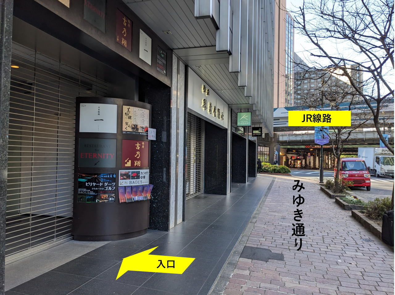 みゆき通り沿い、泰明小学校の校門の前の横断歩道を渡った辺りが地下への入口です。